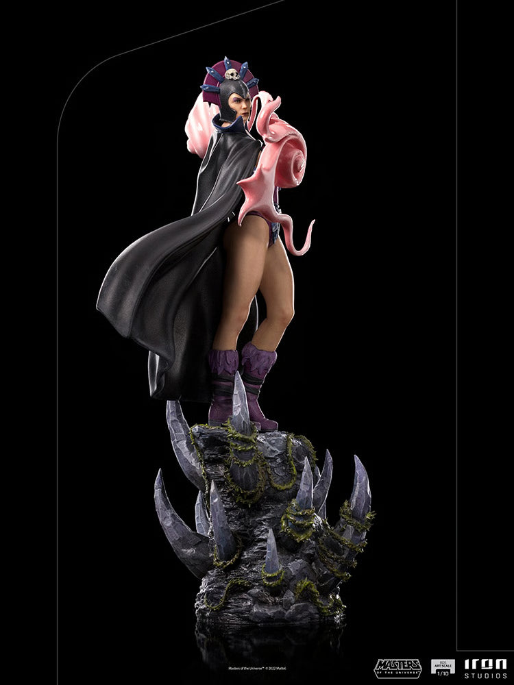 Based on original references from beloved fantasy series, Masters of the Universe, the Evil-Lyn 1/10th Scale Statue has been carefully crafted in hand-painted polystone with a high level of detail to bring the iconic character to life. This stunning statue stands 11.8 inches tall on a thematic Snake Mountain base, capturing the wickedly beautiful witch in her traditional purple and black garb as she forms spirals of nacreous energy to blast away the guardians of Grayskull.