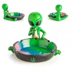 - 10cm Ceramic Stoned Green Alien Smoking Joint & Ashtray with Weed Leaf Design